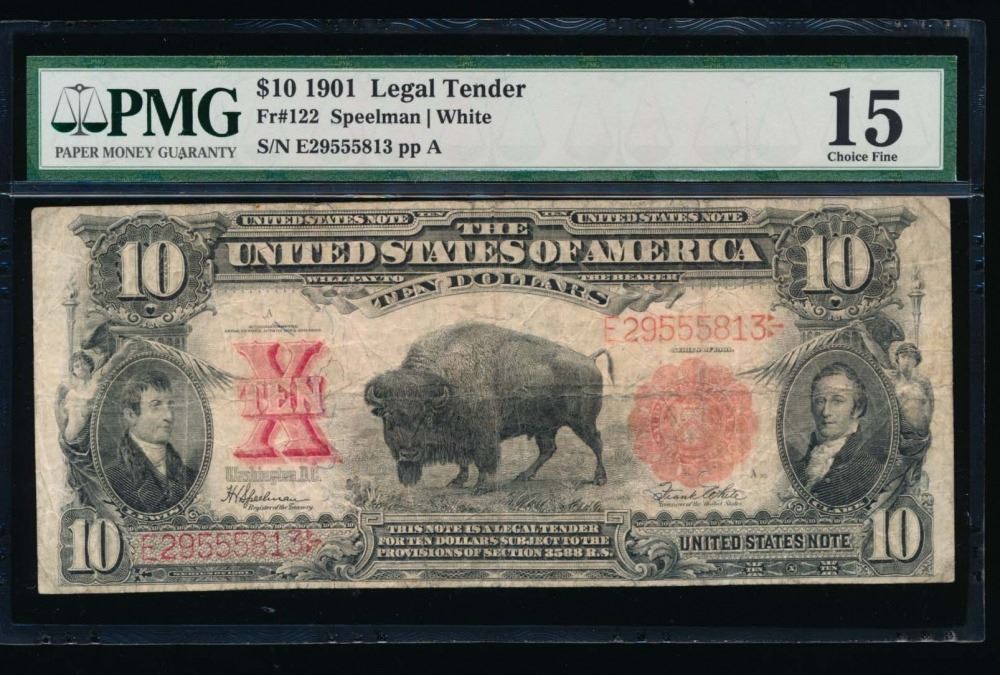 One 1901 $10 Bison Legal Tender Note PMG 15.