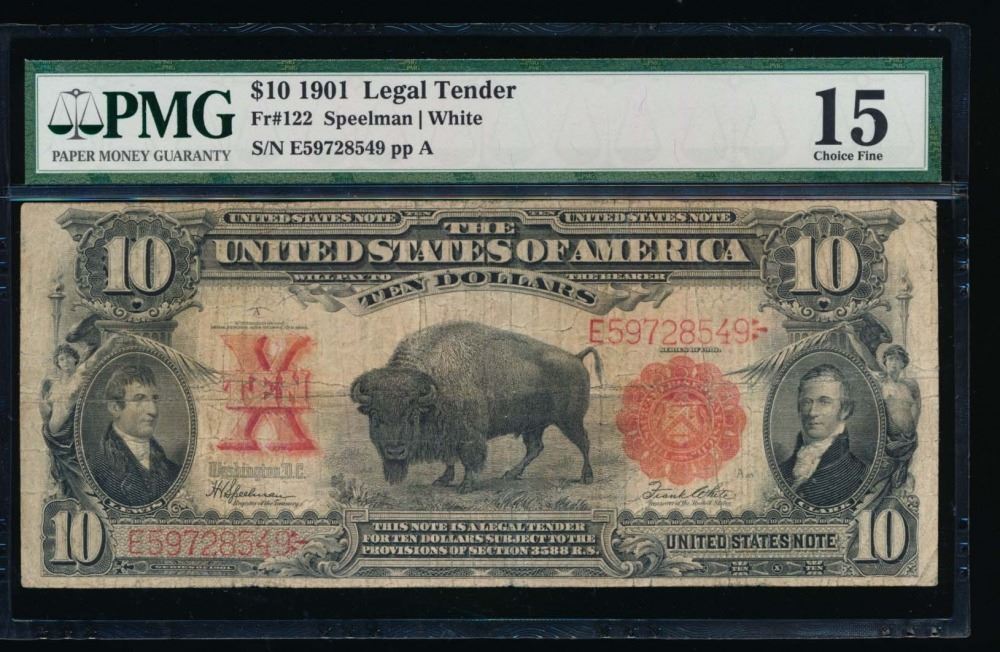 One 1901 $10 Bison Legal Tender Note PMG 15.