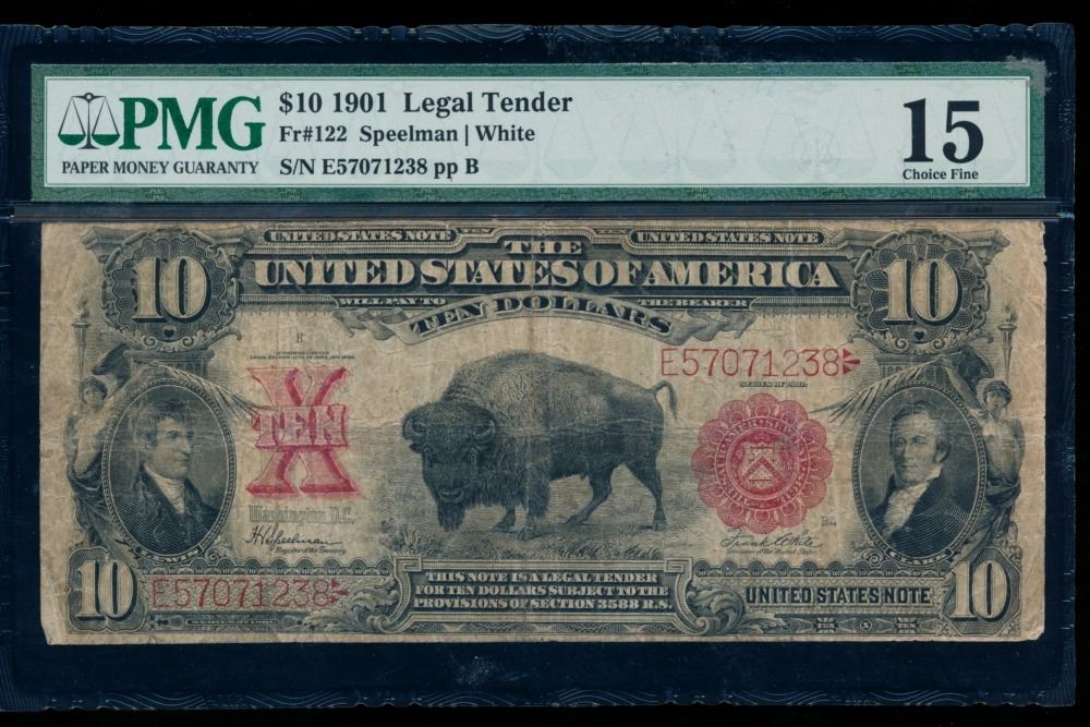 One 1901 $10 Bison Legal Tender Note PMG 15.