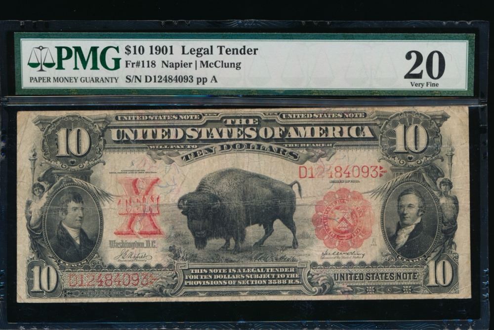 One 1901 $10 Bison Legal Tender Note PMG 20.