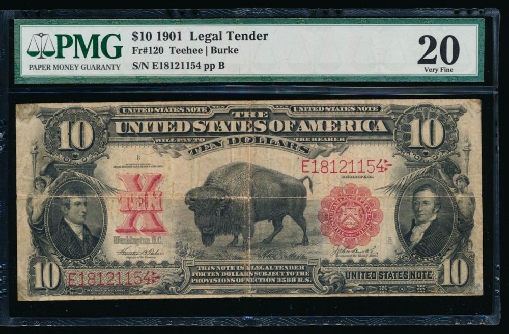 One 1901 $10 Bison Legal Tender Note PMG 20.