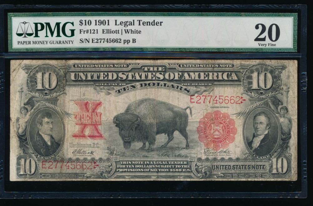 One 1901 $10 Bison Legal Tender Note PMG 20.
