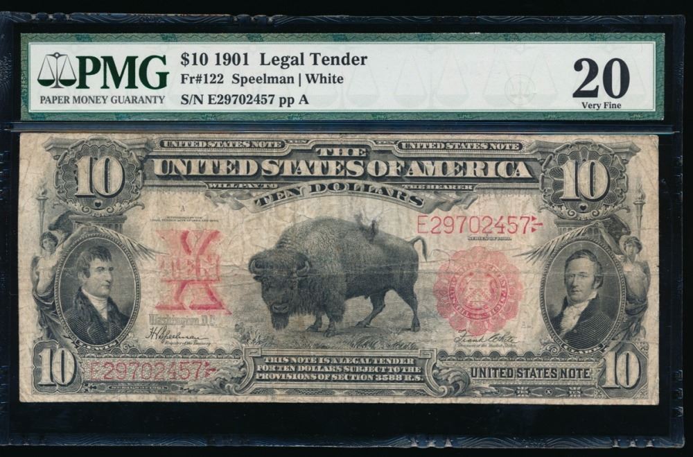 One 1901 $10 Bison Legal Tender Note PMG 20.