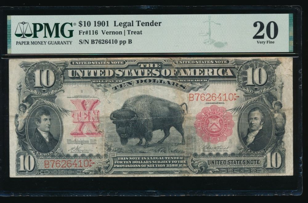 One 1901 $10 Bison Legal Tender Note PMG 20.