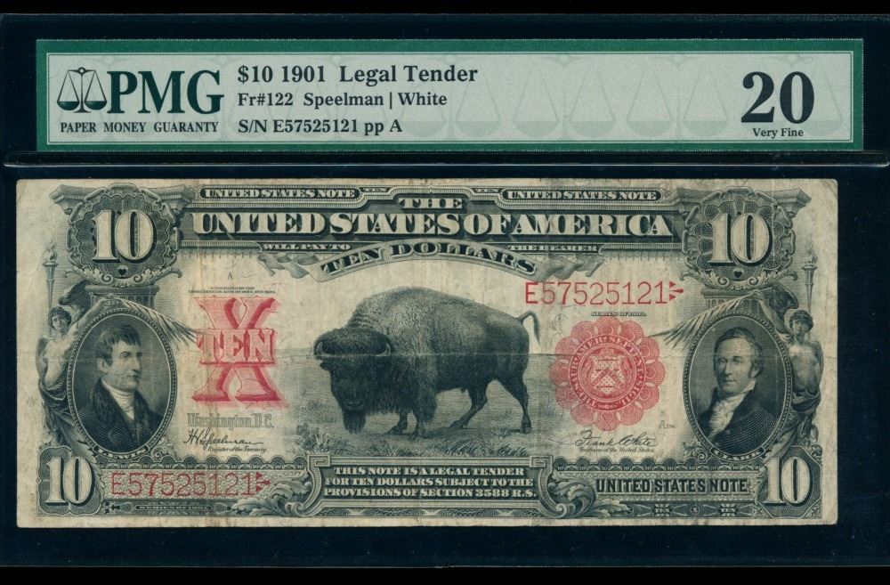 One 1901 $10 Bison Legal Tender Note PMG 20.