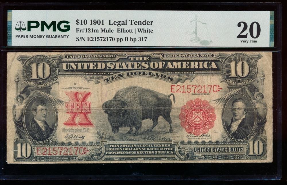 One 1901 $10 Bison Legal Tender Note PMG 20.