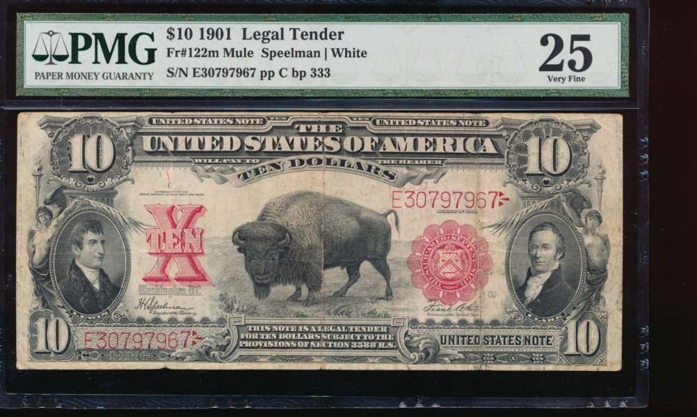 One 1901 $10 Bison Legal Tender Note PMG 25.