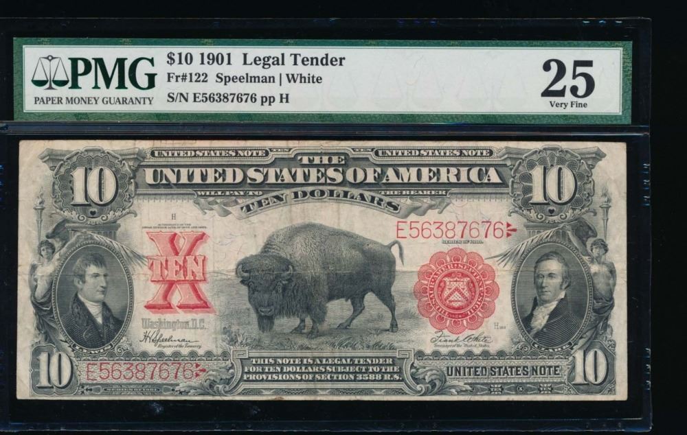 One 1901 $10 Bison Legal Tender Note PMG 25.
