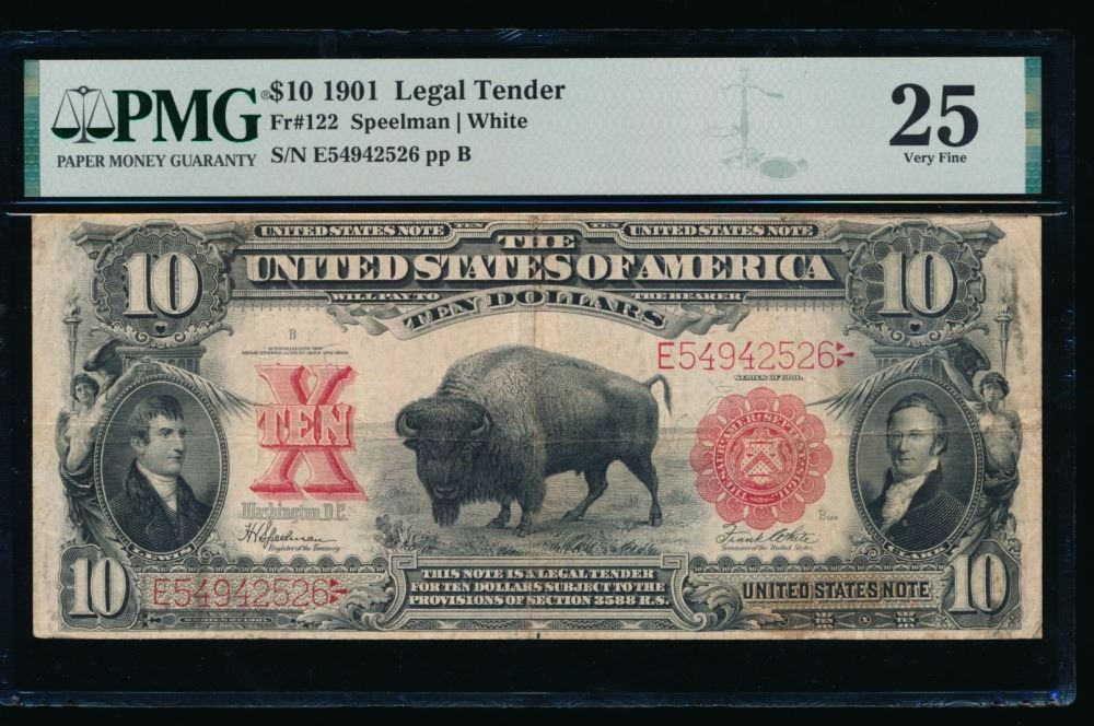 One 1901 $10 Bison Legal Tender Note PMG 25.