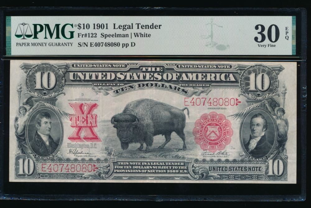 One 1901 $10 Bison Legal Tender Note PMG 30EPQ.