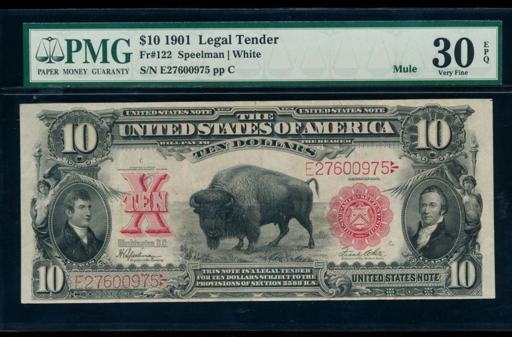 One 1901 $10 Bison Legal Tender Note PMG 30EPQ.