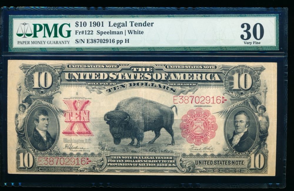 One 1901 $10 Bison Legal Tender Note PMG 30.