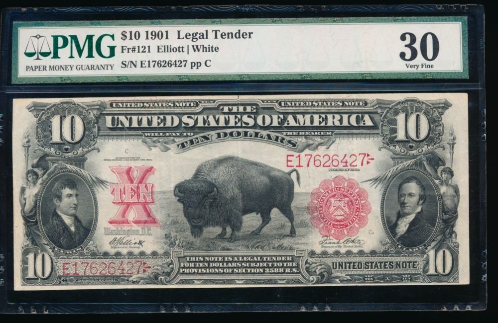 One 1901 $10 Bison Legal Tender Note PMG 30.