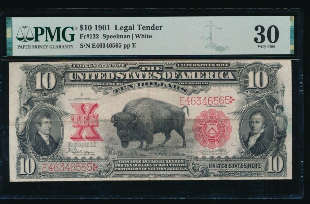 One 1901 $10 Bison Legal Tender Note PMG 30.