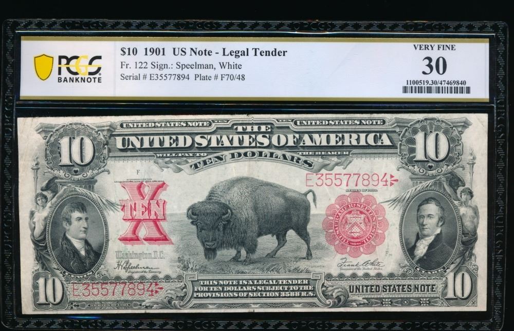 One 1901 $10 Bison Legal Tender Note PMG 30.