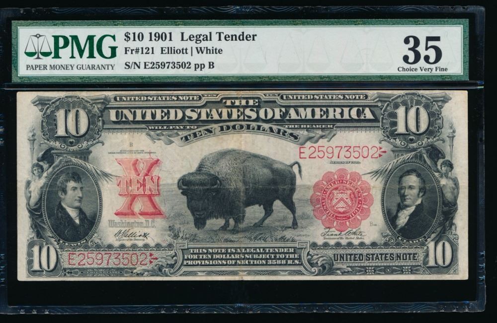 One 1901 $10 Bison Legal Tender Note PMG 35.