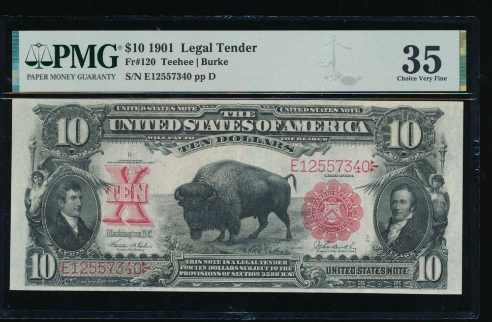 One 1901 $10 Bison Legal Tender Note PMG 35.
