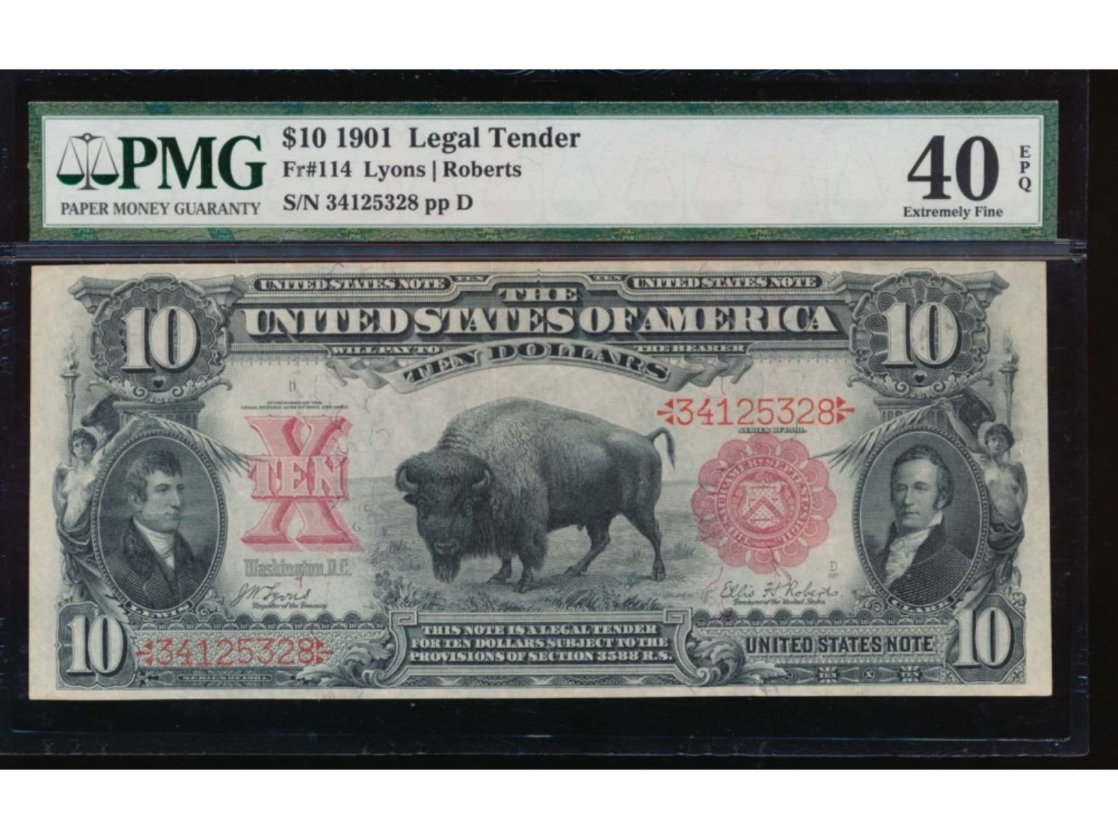 One 1901 $10 Bison Legal Tender Note PMG 40EPQ.