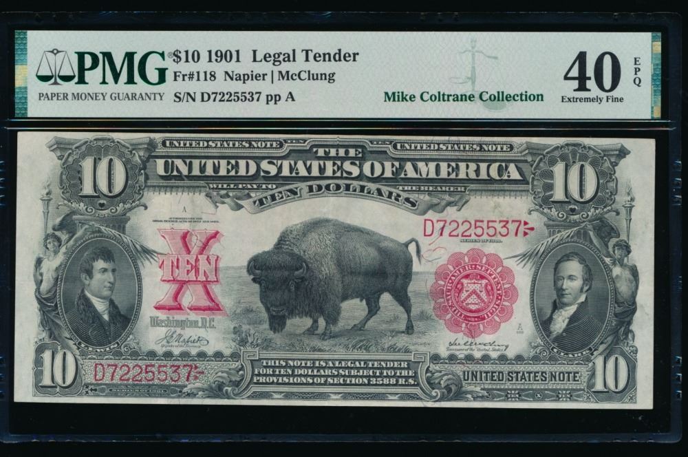 One 1901 $10 Bison Legal Tender Note PMG 40EPQ.