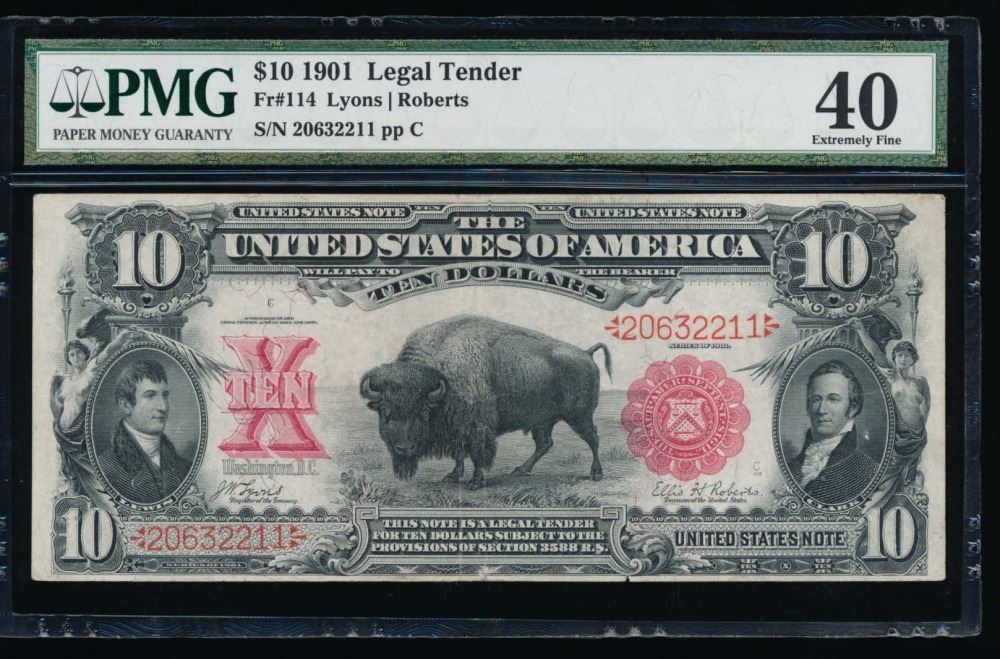 One 1901 $10 Bison Legal Tender Note PMG 40.