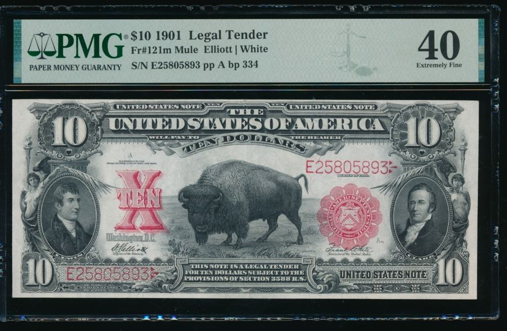 One 1901 $10 Bison Legal Tender Note PMG 40.