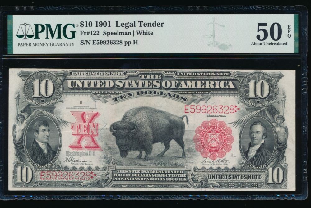 One 1901 $10 Bison Legal Tender Note PMG 50EPQ.