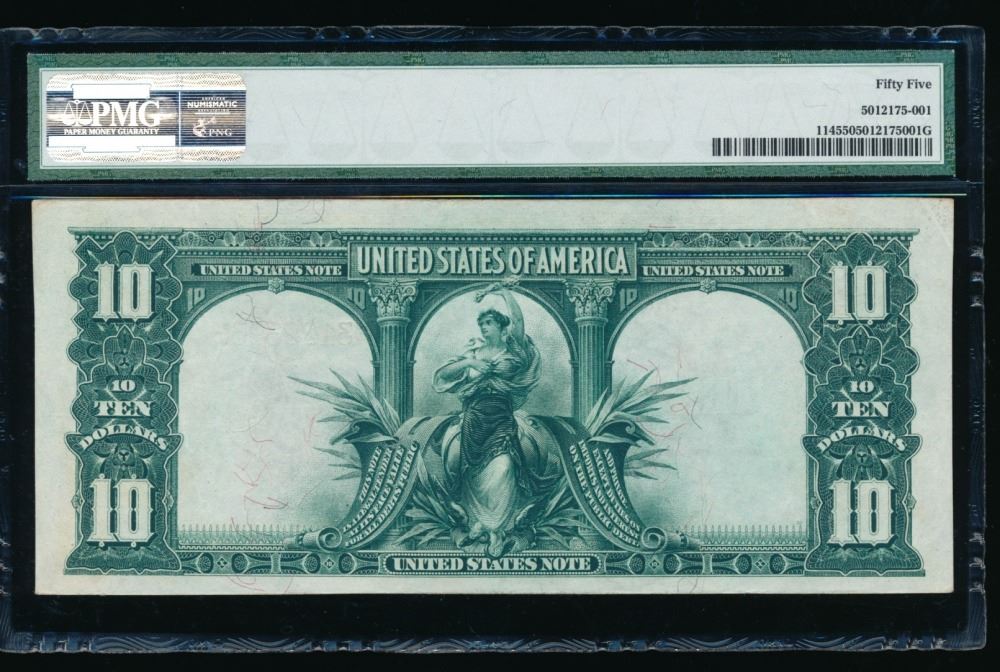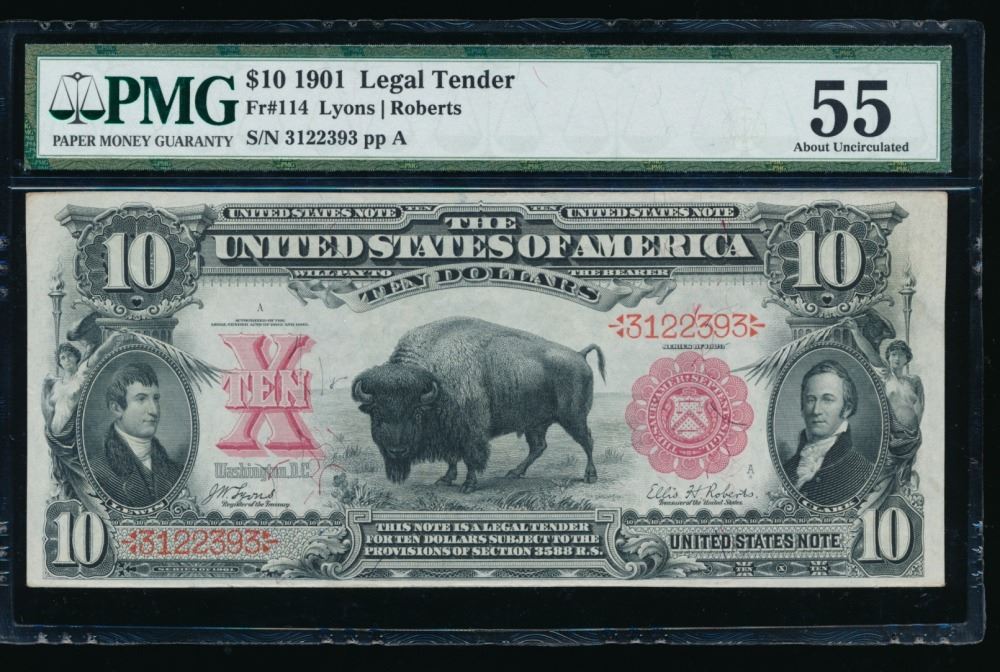 One 1901 $10 Bison Legal Tender Note PMG 55.