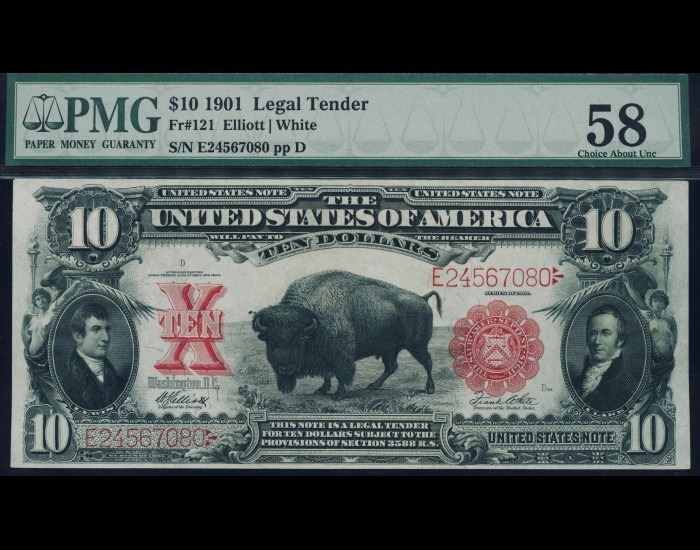 One 1901 $10 Bison Legal Tender Note PMG 58.