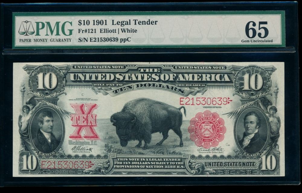One 1901 $10 Bison Legal Tender Note PMG 65.