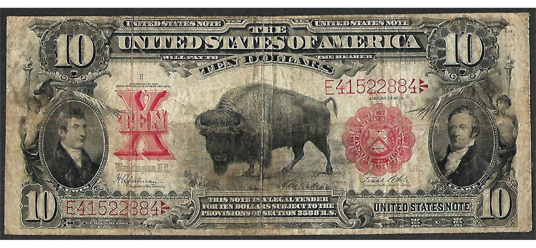 One 1901 $10 Bison Legal Tender Note.