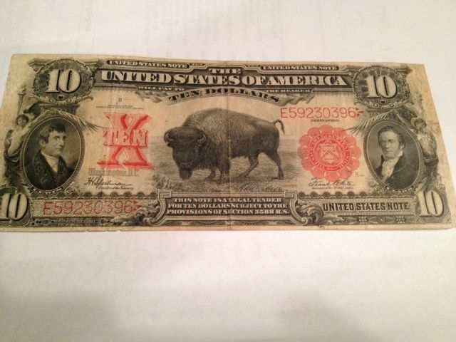 1901 $10 DOLLAR BILL BISON UNITED STATES CURRENCY LEGAL TENDER NOTE