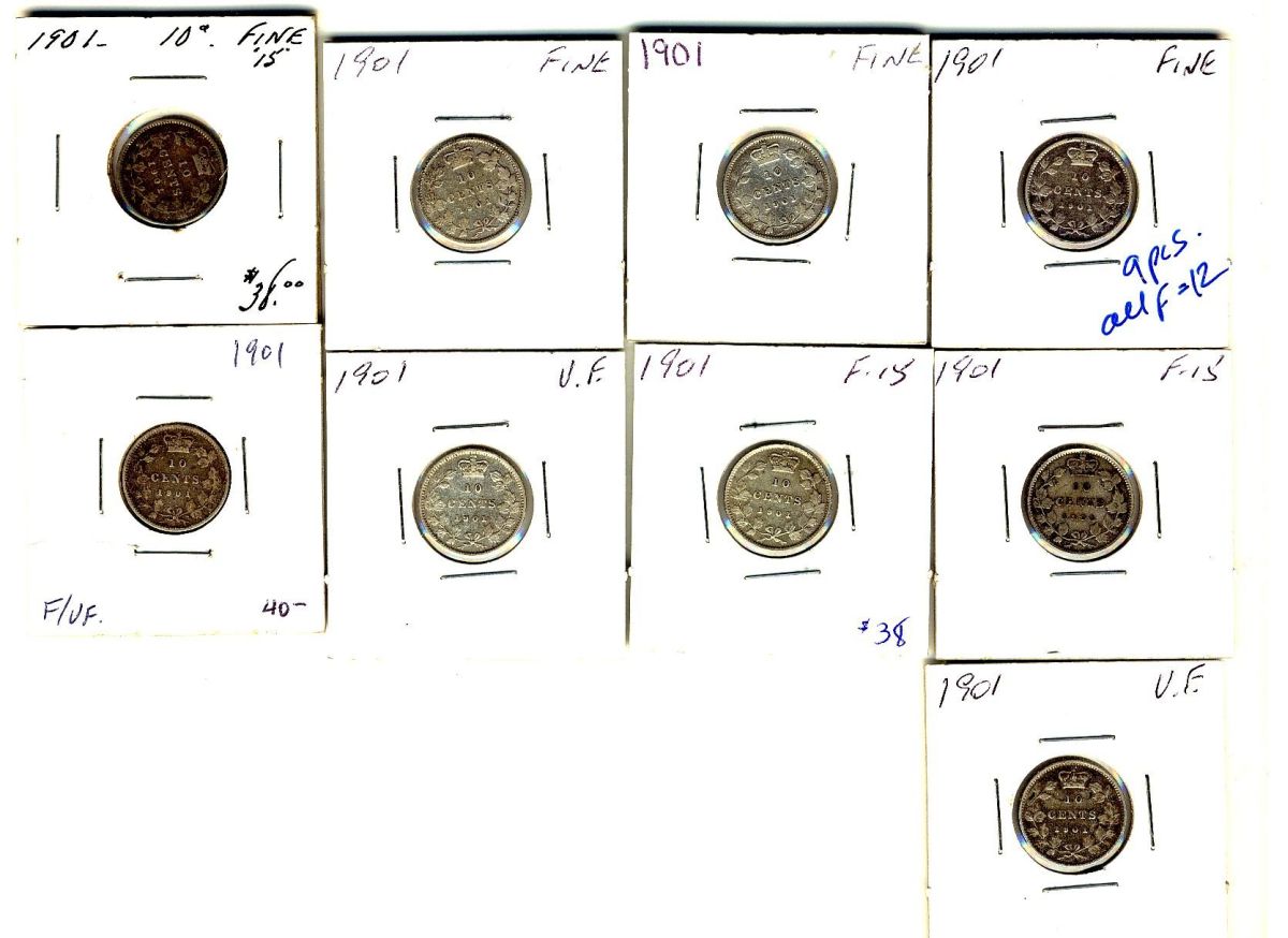 8. The estimates listed are taken from the Canadian Coin News, Charlton catalogues, Canadian Dealers News letter and retail prices, e-bay sales, Cornwell report and/or the actual market selling/ asking prices. Key dates and Highest grade material will