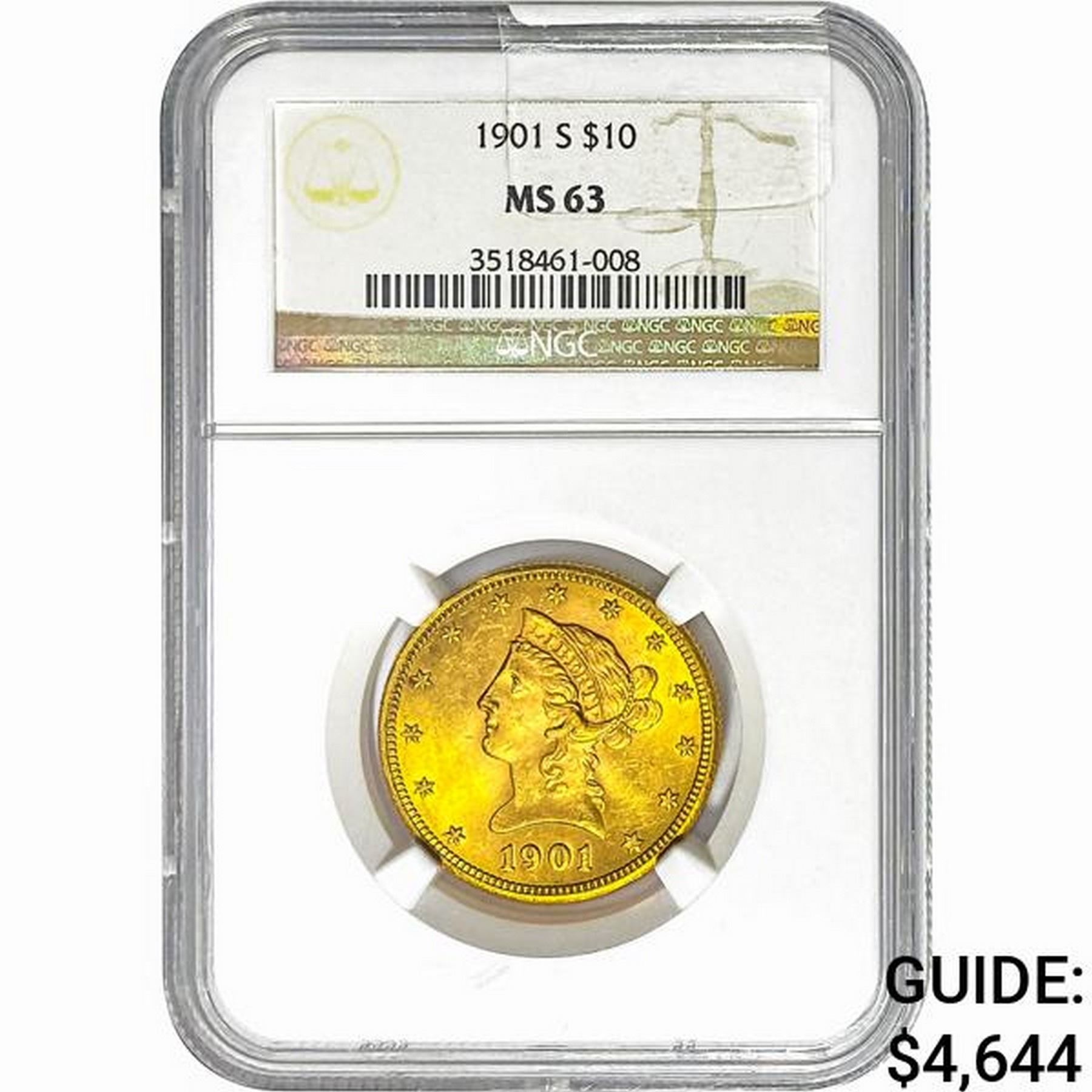 1901 $10 Gold Eagle NGC MS63