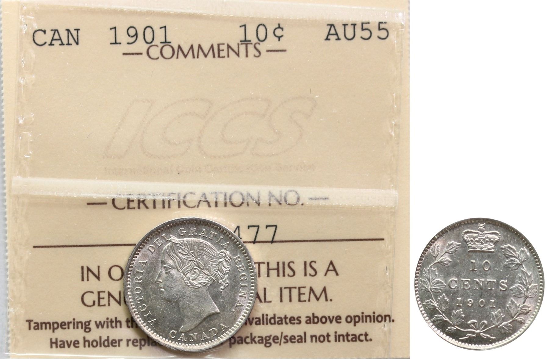 The cataloguer has taken every reasonable measure to ensure that all of the lots in this sale are as described and genuine. All raw coins and banknotes have been graded by the cataloger or the auction house which represent our best professional opinion. To grade coins and banknotes, we use Canadian grading standards, 42 years of experience and good conscience. However, grading is a subjective description in the opinion of the cataloger or the auction house. Among experts there are often differences of opinion on the grading and the eye appeal of a coin. The strike and the state of preservation are often debated. The Canadian Numismatic Company acts as an agent between consignors and buyers. The Canadian Numismatic Company does not guarantee that any coin or banknote cataloged will meet the standards, or the grade, of any third party grading companies. No warranty, whether impressed or implied. Items are as is, no warranty given. We cannot accept responsibility and waive all liability resulting in financial losses, and or incidentals accruing from the sale of any items, nor can we guarantee that items graded by third party services will grade the same if submitted to a different grading service or re-submitted to the same company. Statements by The Canadian Numismatic Company regarding the condition, the eye appeal, the strike and the population of items are for guidance only. All lots offered are sold "AS IS". Title to all lots remains with the auction house until paid for in full by the purchaser. But they are held at the risk of the purchaser once the time of the sale.