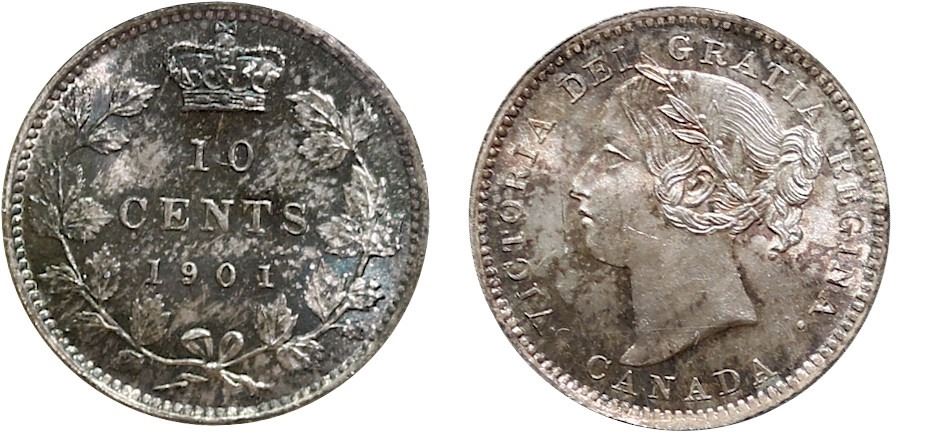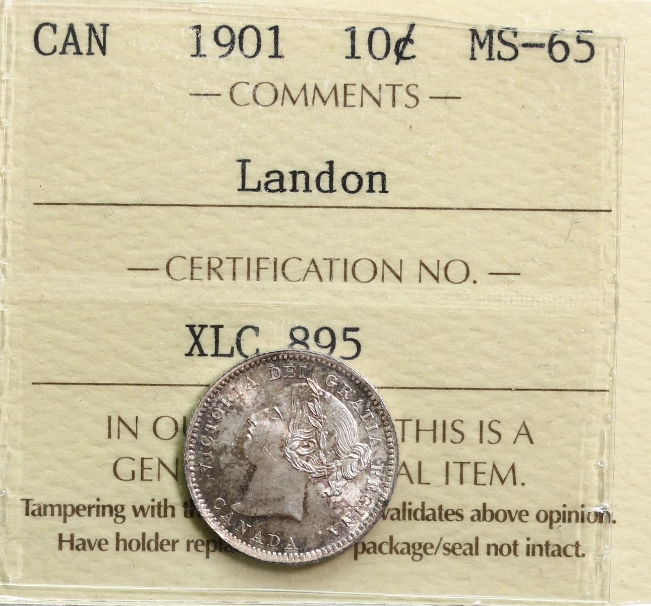 1901 10¢ ICCS Gem Mint State-65 Intense autumn shades over full underlying lustre. Ex. Landon example.