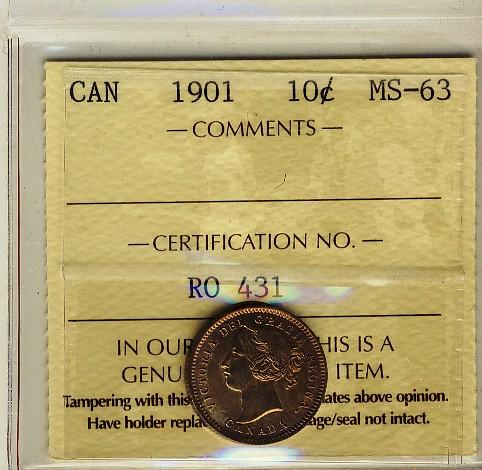 1901 10¢ ICCS MS63