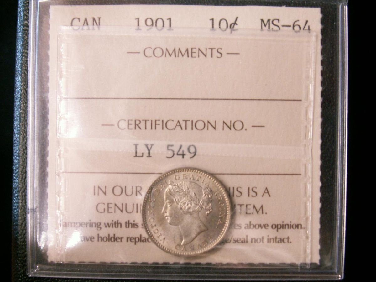 1901 10¢ ICCS MS64. Gem example, lots of lustre.