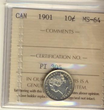 1901 10¢ ICCS MS64. Gem eye appeal.