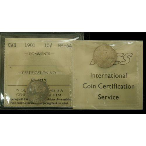 1901 10¢ ICCS MS64, fully brilliant and lustr
