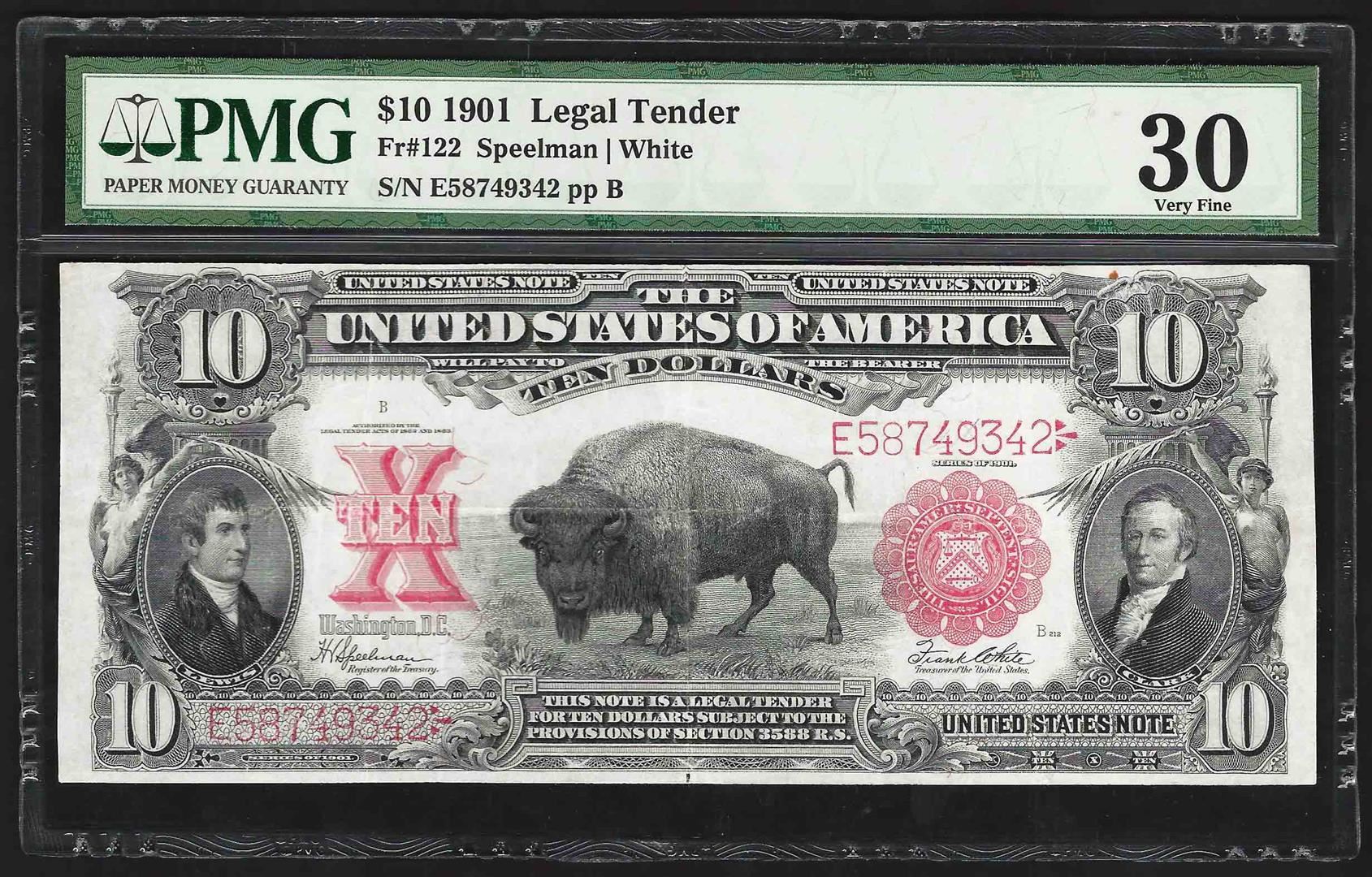 One 1901 $10 Legal Tender Note Fr.122 PMG Very Fine 30. PMG Certified.