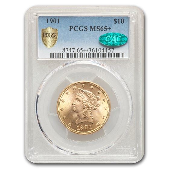 One piece 1901 $10 Liberty Gold Eagle MS-65+ PCGS CAC