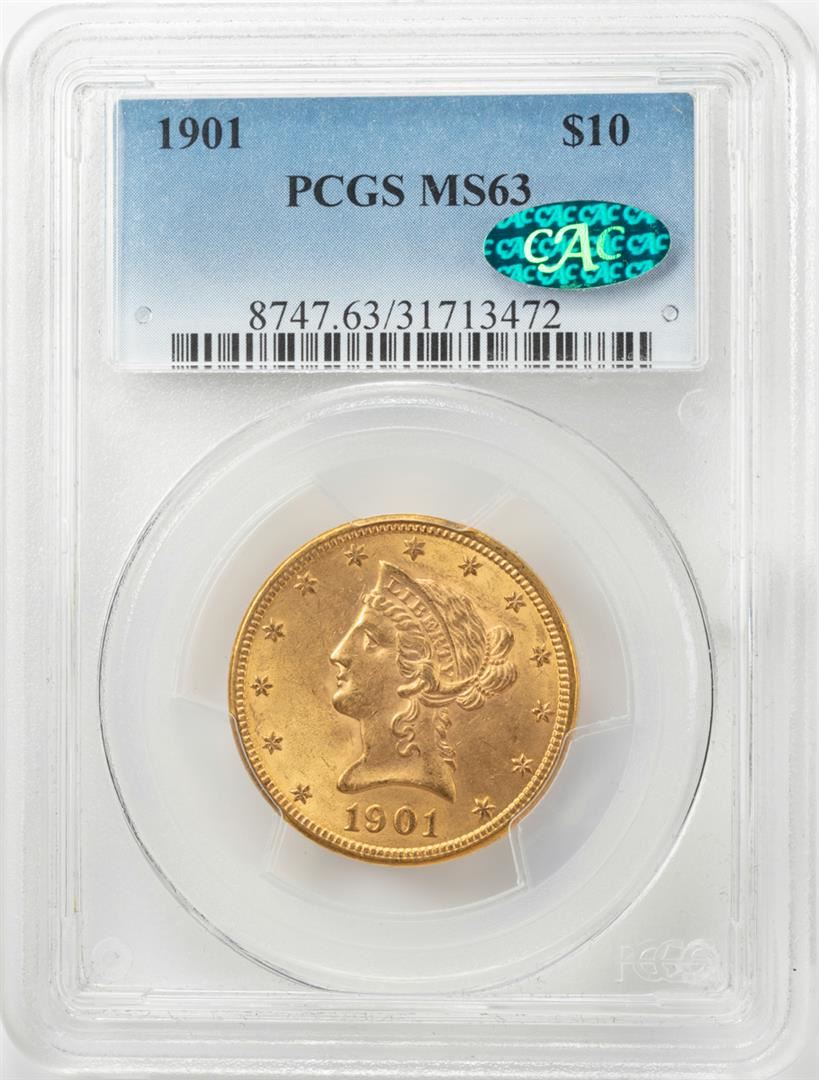One 1901 $10 Liberty Head Eagle Gold Coin PCGS MS63 CAC. PCGS Graded.