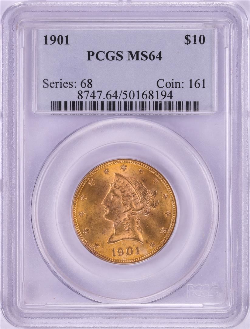 One 1901 $10 Liberty Head Eagle Gold Coin PCGS MS64. PCGS Graded.
