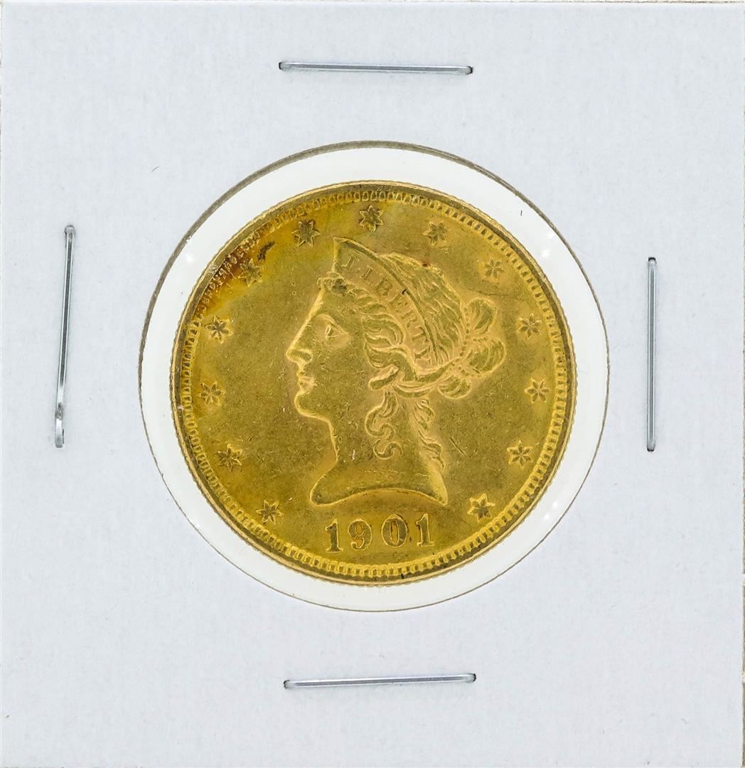One 1901 $10 Liberty Head Eagle Gold Coin.