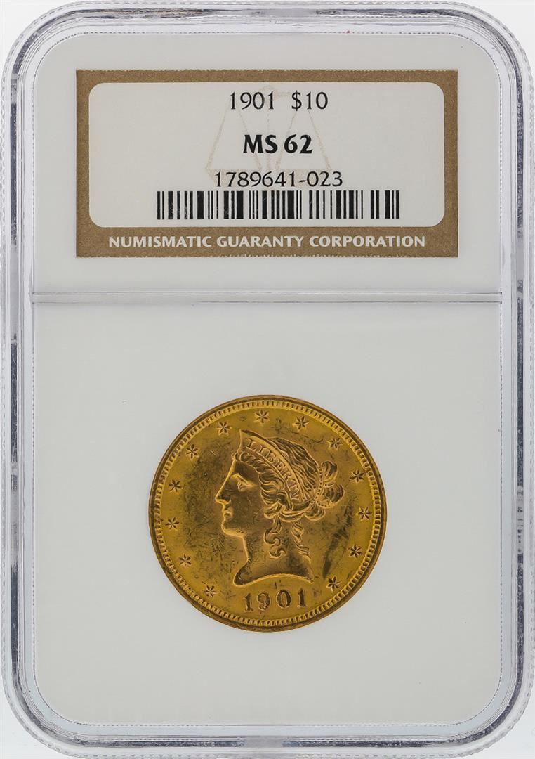 One 1901 $10 Liberty Head Gold Coin NGC Graded MS62. NGC Certified.
