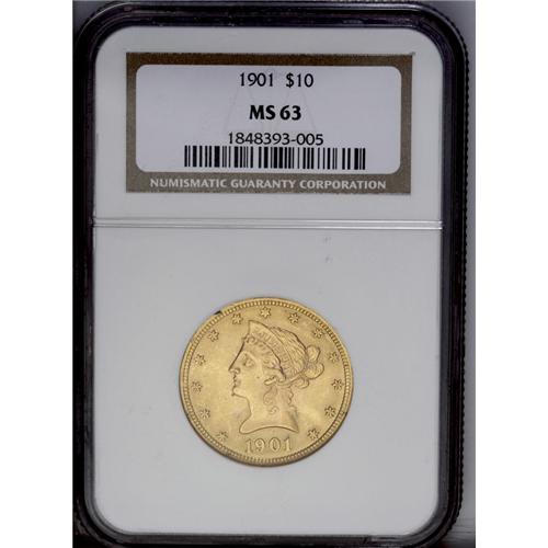 1901 $10 MS63 NGC. Nicely struck with pleasing luster