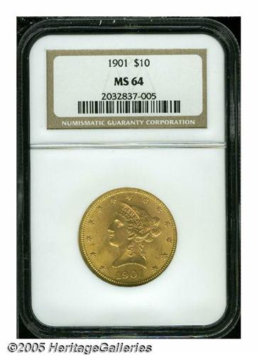 1901 $10 MS64 NGC. Boldly struck and lustrous, wi