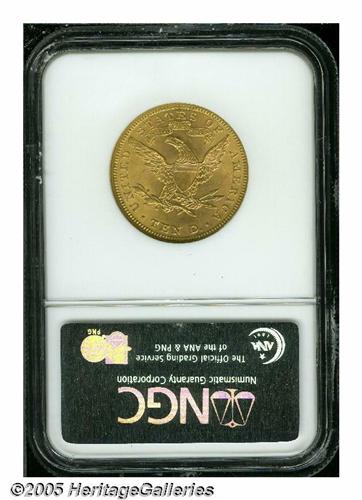 <B>1901<$10> MS64 NGC.</B></I> Boldly struck and lustrous, with pleasing, subtly variegated pastel coloration and a few small abrasions on each side.<BR><I>From the Dr. Kurt Peters Collection.</B></I> From the Dr. Kurt Peters Collection.