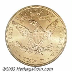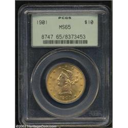 <table><tr><td><TABLE cellSpacing=0 cellPadding=0 width="100%" bgColor=#000000 border=0><TBODY> <TR><TD width="100%"><TABLE cellSpacing=1 cellPadding=3 width="100%" border=0><TBODY><TR><TD width="100%" bgColor=#79735c><FONT face=arial color=#ffffff size=3><B>Description</B> </FONT></TD></TR><TR><TD width="100%" bgColor=#ffffff><FONT face=arial size=2><B>1901 $10 MS65 PCGS.</B></I> When first viewing this coin, one almost expects to see an S-mintmark on the reverse. But when more closely examined, one notices that the luster is just a bit softer (but still frosted), which would be consistent with a Philadelphia product. When angled just so, one notices that the fields are bright golden-orange, particularly the reverse. Sharply struck, there are just the slightest luster grazes present that prevent an even higher grade. </FONT></TD></TR></TBODY></TABLE></TD></TR></TBODY></TABLE><BR><A name=PricesRealized></A><TABLE cellSpacing=0 cellPadding=0 width="100%" bgColor=#000000 border=0><TBODY><TR><TD width="100%"><TABLE cellSpacing=1 cellPadding=3 width="100%" border=0><TBODY><TR><TD width="100%" bgColor=#79735c><A name=PR><FONT face=arial color=#ffffff size=3><B>Previous Prices from Heritage Auctions</B> </FONT></A></TD></TR><TR><TD bgColor=#f6f6ed><TABLE cellSpacing=0 cellPadding=0 width="100%" border=1><TBODY><TR><TD align=middle width="33%"><B>Date</B></TD><TD align=middle width="33%"><B>Service</B></TD><TD align=middle width="33%"><B>Price</B></TD></TR><TR bgColor=whitesmoke><TD width="33%"><B>05/31/2003</B></TD><TD width="33%">NGC</TD><TD width="33%">$2,300.00</TD></TR><TR bgColor=whitesmoke><TD width="33%"><B>10/06/2000</B></TD><TD width="33%">PCGS</TD><TD width="33%">$1,811.25</TD></TR><TR bgColor=whitesmoke><TD width="33%"><B>10/06/2000</B></TD><TD width="33%">PCGS</TD><TD width="33%">$1,811.25</TD></TR><TR bgColor=whitesmoke><TD width="33%"><B>10/06/2000</B></TD><TD width="33%">NGC</TD><TD width="33%">$1,868.75</TD></TR><TR bgColor=whitesmoke><TD width="33%"><B>02/11/2000</B></TD><TD width="33%">NGC</TD><TD width="33%">$2,012.50</TD></TR><TR bgColor=whitesmoke><TD width="33%"><B>02/11/2000</B></TD><TD width="33%">NGC</TD><TD width="33%">$2,012.50</TD></TR><TR bgColor=whitesmoke><TD width="33%"><B>02/11/2000</B></TD><TD width="33%">NGC</TD><TD width="33%">$2,012.50</TD></TR><TR bgColor=whitesmoke><TD width="33%"><B>01/07/2000</B></TD><TD width="33%">PCGS</TD><TD width="33%">$2,300.00</TD></TR><TR bgColor=whitesmoke><TD width="33%"><B>01/07/2000</B></TD><TD width="33%">PCGS</TD><TD width="33%">$2,300.00</TD></TR><TR bgColor=whitesmoke><TD width="33%"><B>01/08/2000</B></TD><TD width="33%">PCGS</TD><TD width="33%">$2,185.00</TD></TR><TR bgColor=whitesmoke><TD width="33%"><B>11/19/1999</B></TD><TD width="33%">NGC</TD><TD width="33%">$1,840.00</TD></TR><TR bgColor=whitesmoke><TD width="33%"><B>11/19/1999</B></TD><TD width="33%">NGC</TD><TD width="33%">$1,840.00</TD></TR><TR bgColor=whitesmoke><TD width="33%"><B>11/18/1999</B></TD><TD width="33%">NGC</TD><TD width="33%">$2,300.00</TD></TR><TR bgColor=whitesmoke><TD width="33%"><B>11/18/1999</B></TD><TD width="33%">NGC</TD><TD width="33%">$2,242.50</TD></TR><TR bgColor=whitesmoke><TD width="33%"><B>11/18/1999</B></TD><TD width="33%">NGC</TD><TD width="33%">$2,242.50</TD></TR><TR bgColor=whitesmoke><TD width="33%"><B>09/25/1999</B></TD><TD width="33%">NGC</TD><TD width="33%">$2,265.50</TD></TR><TR bgColor=whitesmoke><TD width="33%"><B>01/08/1999</B></TD><TD width="33%">PCGS</TD><TD width="33%">$5,290.00</TD></TR><TR bgColor=whitesmoke><TD width="33%"><B>01/08/1999</B></TD><TD width="33%">PCGS</TD><TD width="33%">$5,290.00</TD></TR><TR bgColor=whitesmoke><TD width="33%"><B>06/07/1997</B></TD><TD width="33%">PCGS</TD><TD width="33%">$3,850.00</TD></TR><TR bgColor=whitesmoke><TD width="33%"><B>08/13/1996</B></TD><TD width="33%">PCGS</TD><TD width="33%">$3,740.00</TD></TR><TR bgColor=whitesmoke><TD width="33%"><B>08/13/1996</B></TD><TD width="33%">PCGS</TD><TD width="33%">$3,740.00</TD></TR><TR bgColor=whitesmoke><TD width="33%"><B>01/06/1996</B></TD><TD width="33%">PCGS</TD><TD width="33%">$2,970.00</TD></TR><TR bgColor=whitesmoke><TD width="33%"><B>03/02/1995</B></TD><TD width="33%">NGC</TD><TD width="33%">$2,860.00</TD></TR><TR bgColor=whitesmoke><TD width="33%"><B>03/02/1995</B></TD><TD width="33%">NGC</TD><TD width="33%">$2,860.00</TD></TR><TR bgColor=whitesmoke><TD width="33%"><B>12/09/1994</B></TD><TD width="33%">NGC</TD><TD width="33%">$3,740.00</TD></TR><TR bgColor=whitesmoke><TD width="33%"><B>05/22/1993</B></TD><TD width="33%">NGC</TD><TD width="33%">$4,840.00</TD></TR><TR bgColor=whitesmoke><TD width="33%"><B>05/22/1993</B></TD><TD width="33%">NGC</TD><TD width="33%">$4,840.00</TD></TR><TR bgColor=whitesmoke><TD width="33%"><B>04/28/1999</B></TD><TD width="33%">PCGS</TD><TD width="33%">$3,631.00</TD></TR><TR bgColor=whitesmoke><TD width="33%"><B>11/01/2001</B></TD><TD width="33%">PCGS</TD><TD width="33%">$2,645.00</TD></TR><TR bgColor=whitesmoke><TD width="33%"><B>11/01/2001</B></TD><TD width="33%">PCGS</TD><TD width="33%">$2,645.00</TD></TR><TR bgColor=whitesmoke><TD width="33%"><B>09/01/1998</B></TD><TD width="33%">NGC</TD><TD width="33%">$3,960.00</TD></TR><TR bgColor=whitesmoke><TD width="33%"><B>02/01/2000</B></TD><TD width="33%">NGC</TD><TD width="33%">$2,011.00</TD></TR><TR bgColor=whitesmoke><TD width="33%"><B>02/01/2000</B></TD><TD width="33%">NGC</TD><TD width="33%">$2,011.00</TD></TR><TR bgColor=whitesmoke><TD width="33%"><B>01/01/1991</B></TD><TD width="33%">PCGS</TD><TD width="33%">$6,050.00</TD></TR><TR bgColor=whitesmoke><TD width="33%"><B>02/01/1991</B></TD><TD width="33%">PCGS</TD><TD width="33%">$5,740.00</TD></TR><TR bgColor=whitesmoke><TD width="33%"><B>02/01/1991</B></TD><TD width="33%">PCGS</TD><TD width="33%">$5,740.00</TD></TR><TR bgColor=whitesmoke><TD width="33%"><B>02/01/1991</B></TD><TD width="33%">PCGS</TD><TD width="33%">$5,610.00</TD></TR><TR bgColor=whitesmoke><TD width="33%"><B>09/01/1994</B></TD><TD wid