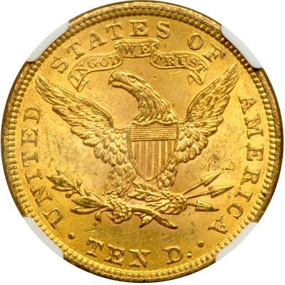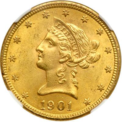 1901 $10. NGC graded MS-63. Golden hues blanket both sides quite nicely.